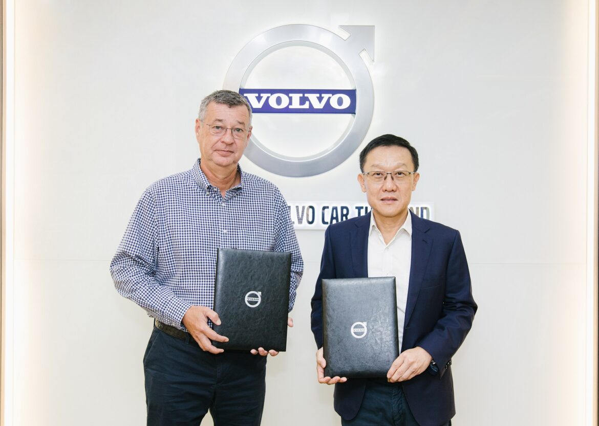 ” มร.คริส เวลส์ ” กรรมการผู้จัดการ บริษัท วอลโว่ คาร์ ประเทศไทย จำกัด และ ” คุณธวัชชัย จึงสงวนพรสุข “ กรรมการผู้จัดการ บริษัท พระนคร สวีดิช คาร์ จำกัด (ขวา) ร่วมลงนามในพิธีเซ็นต์สัญญาก่อสร้างศูนย์บริการซ่อมตัวถังและสีมาตรฐานครบวงจร Volvo Certified Damage Repair Centre (VCDR) แห่งใหม่ เพื่ออำนวยความสะดวกให้แก่ลูกค้าวอลโว่ในพื้นที่กลางเมืองผ่านศูนย์บริการงานตัวถังและสีที่ได้รับการรับรองและการันตีคุณภาพและประสิทธิภาพตามมาตรฐานวอลโว่ คาร์